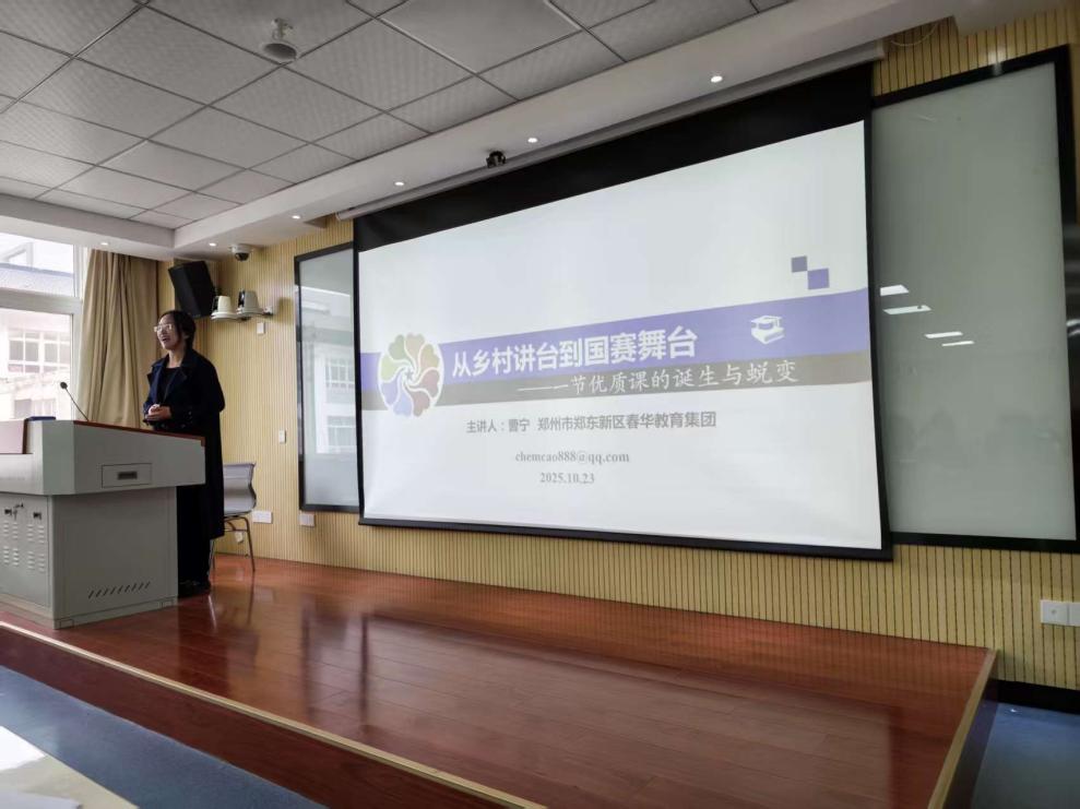10月23日上午,郑州市郑东新区春华教育集团曹宁老师,围绕“从乡村讲台到国赛舞台——一节优质课的诞生与转化”开展专题分享,现场教师参与热情高涨,互动氛围浓厚。