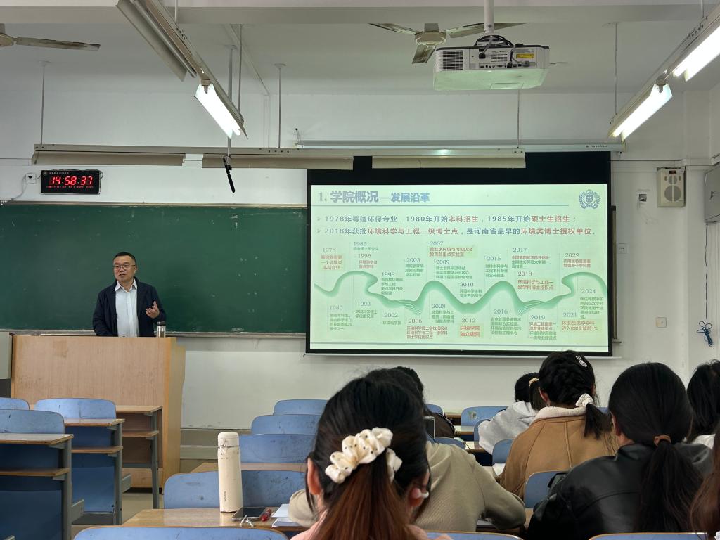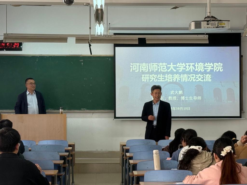 为深化校际交流合作,搭建学生升学深造平台,10月15日下午,河南师范大学环境学院副院长武大鹏教授应邀来到学院,在文津楼313教室为我院毕业班学生进行考研宣讲。学院领导、辅导员老师及学院具有考研意向的学生参加了本次活动。